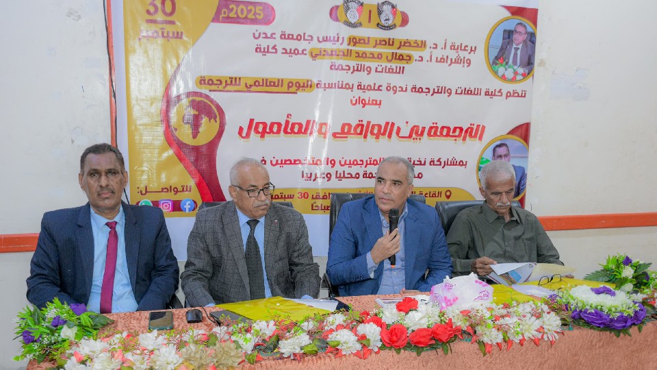 صوت عدن | إعلام جامعة عدن: احتفاءً باليوم العالمي للترجمة، نظمت كلية اللغات والترجمة بجامعة عدن صباح اليوم الثلاثاء 30 سبتمبر، ندوة علمية حملت عنوان: "الترجمة بين الواقع والمأمول"، وذلك برعاية كريمة ...