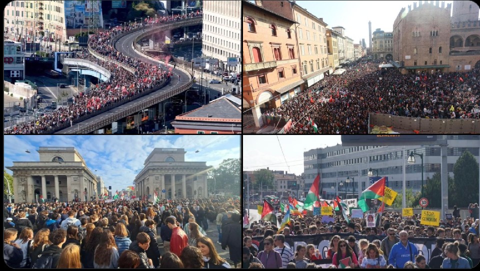 🔸شاهد على منصة X: بولونيا 🇵🇸 خرج مئة ألف شخص إلى الشوارع دعماً للشعب الفلسطيني ولأسطول الصمود العالمي. أُغلق الطريق الدائري والطريق السريع.